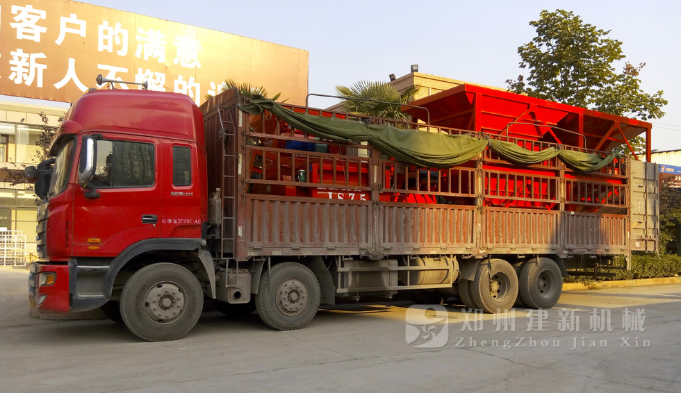 9月15日,周口用戶(hù)訂制的HZS35混凝土攪拌站設(shè)備,于生產(chǎn)廠家建新機(jī)械裝上卡車(chē),等待發(fā)往河南周口。