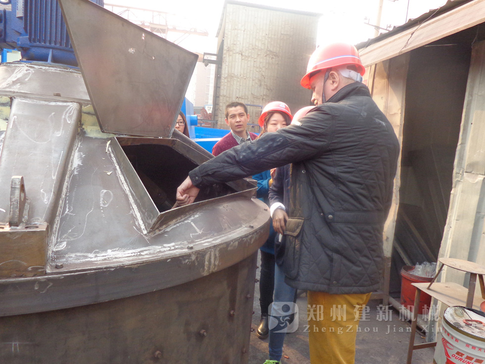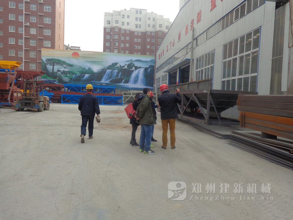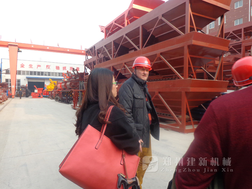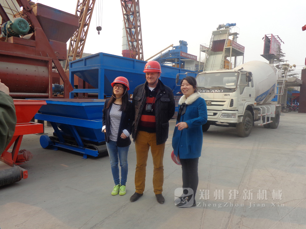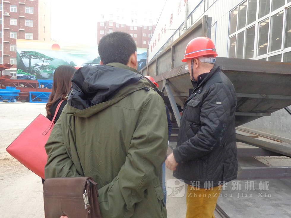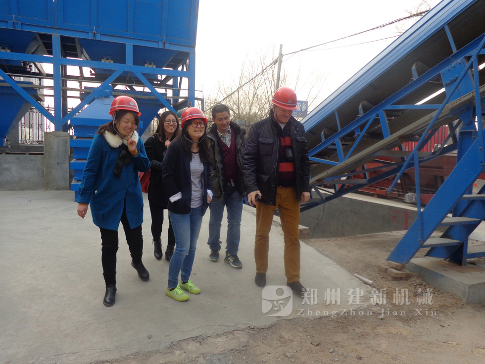 2014年11月,來自俄羅斯的客戶來到鄭州建新公司簽訂了兩套時產(chǎn)120方混凝土攪拌站設(shè)備的大訂單,下圖為建新公司銷售部劉經(jīng)理、經(jīng)理帶客戶參觀建新公司的生產(chǎn)車間及成品貨場。