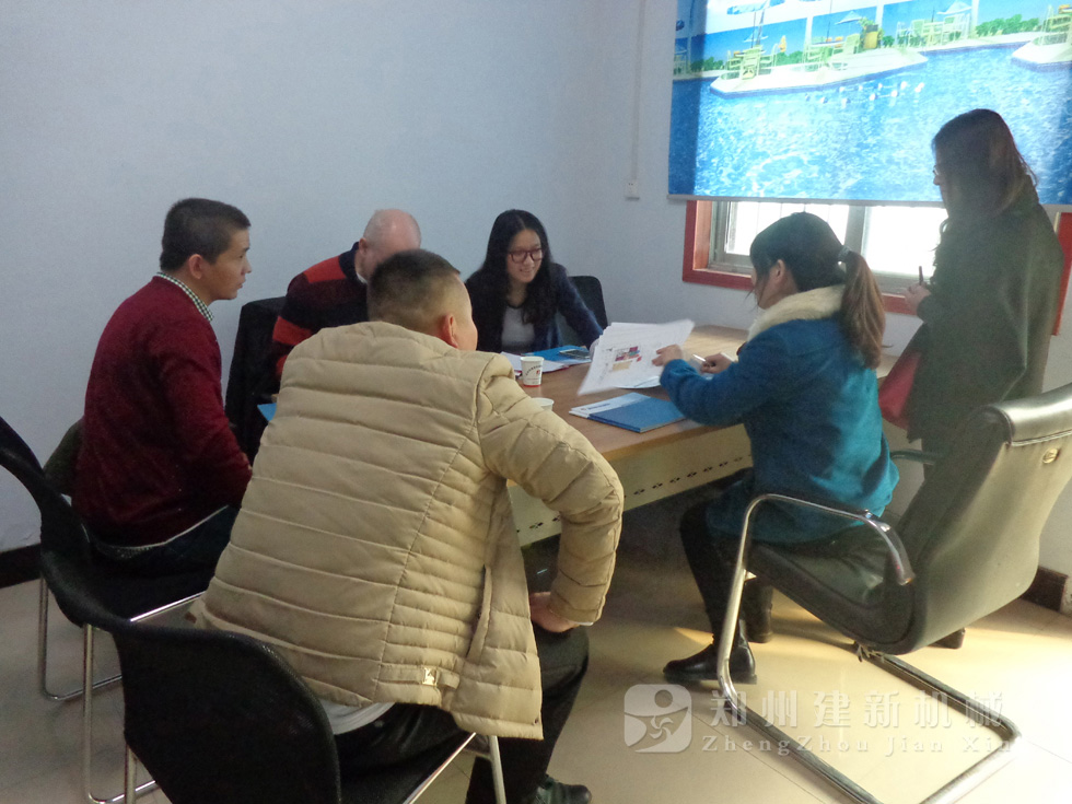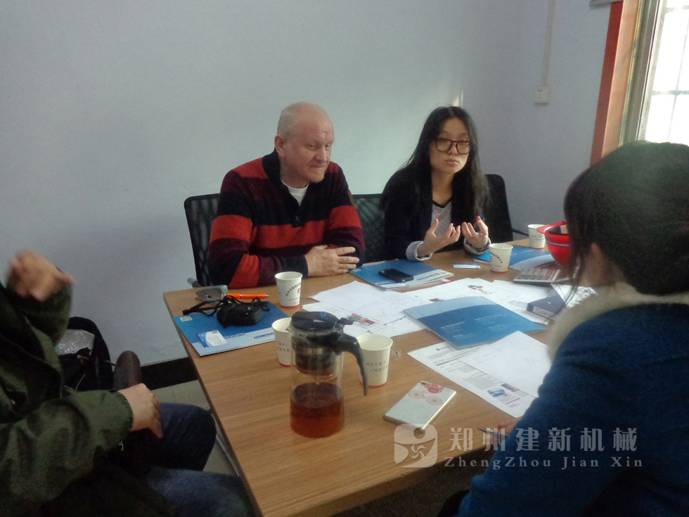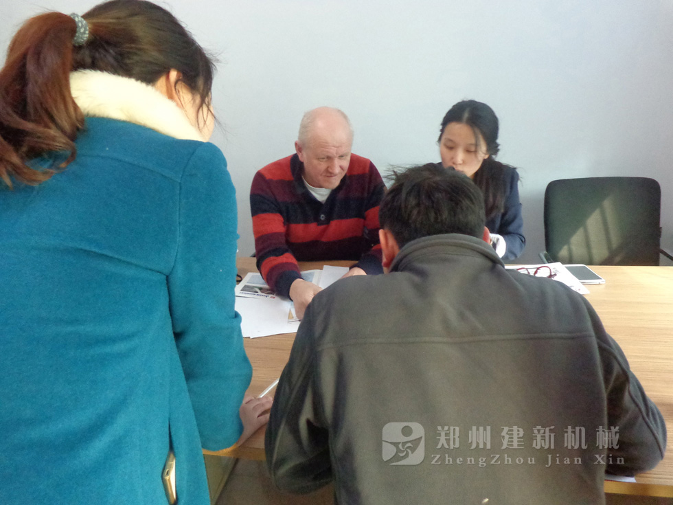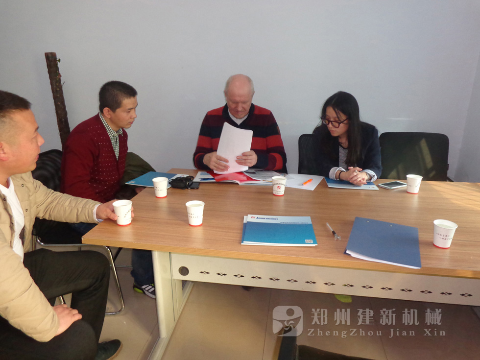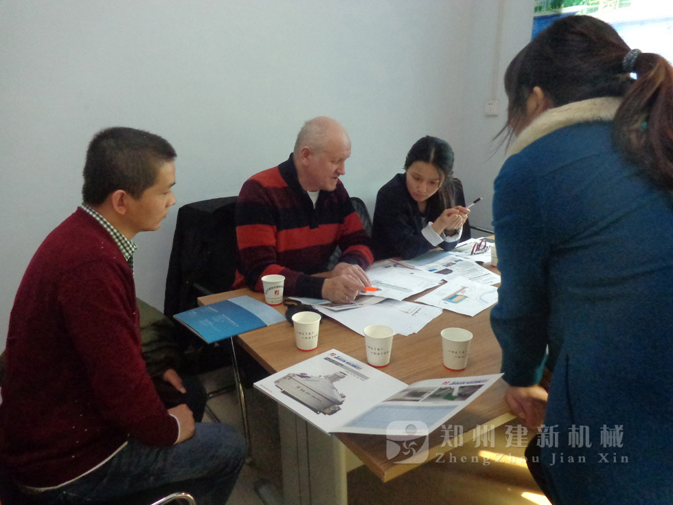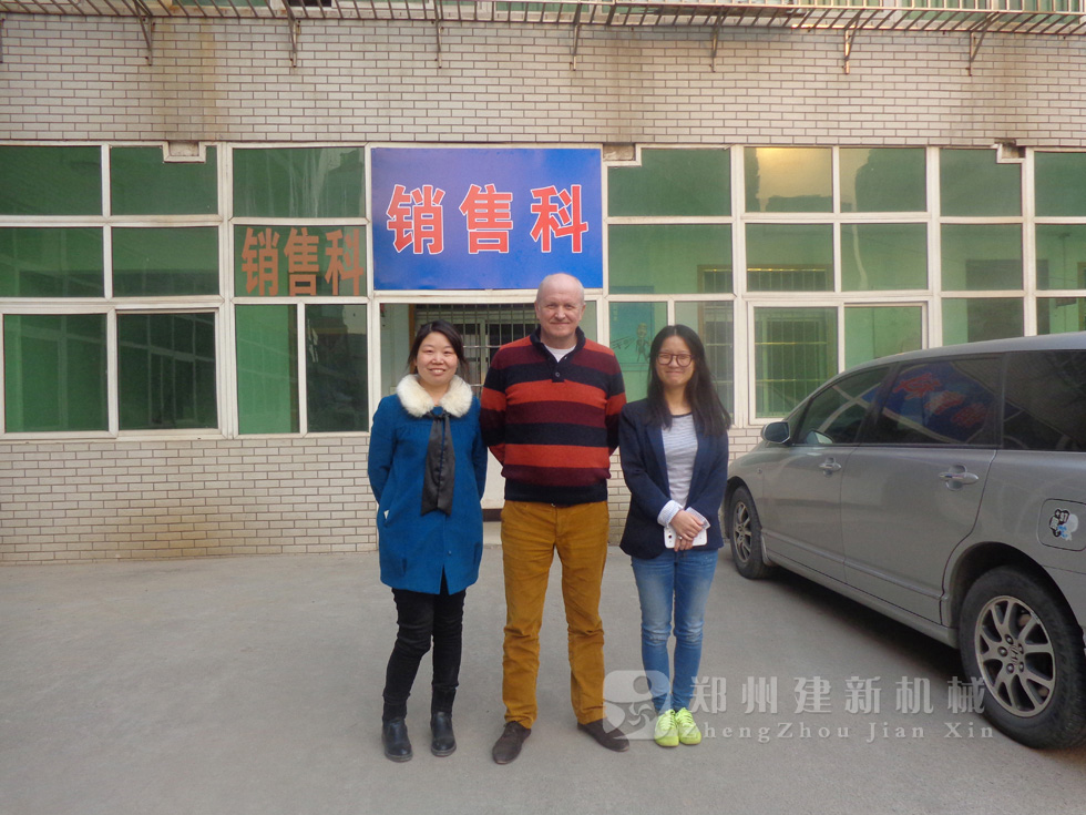 2014年11月,來自俄羅斯的客戶來到鄭州建新公司簽訂了兩套時產(chǎn)120方混凝土攪拌站設(shè)備的大訂單,下圖為建新公司銷售部劉經(jīng)理、經(jīng)理帶客戶參觀建新公司的生產(chǎn)車間及成品貨場。