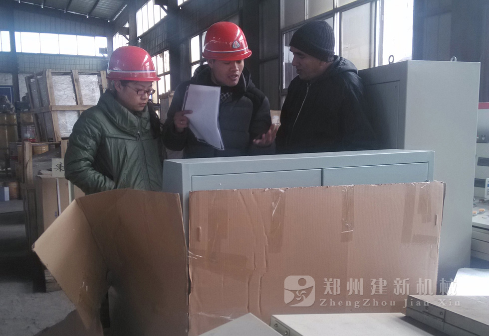 來自馬來西亞的客戶在建新公司外貿部楊經(jīng)理的帶下,參觀了建新公司的生產車間、倉庫等,對混凝土攪拌站的各種主要零部件、制作工藝、材質等,作了詳細深入的了解。